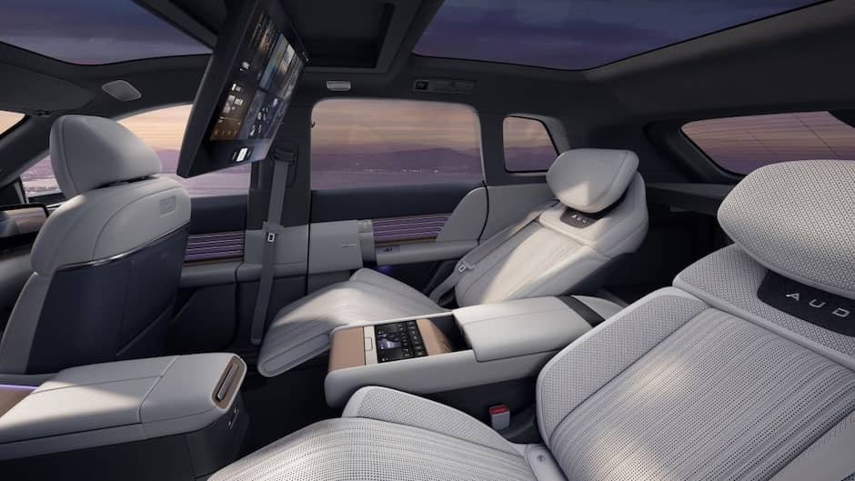 İkinci cərgədəki sərnişinlərin ixtiyarına QD Mini LED texnologiyasına malik olan tavana quraşdırılmış 21,4 düymlük ekran verilib, ikinci dərəcəli funksiyalar idarə etmək üçün nəzərdə tutulmuş ekran isə, mərkəzi dirsəkaltı-boksun ucluğunda yerləşir. Panoram dam çoxpilləli elektroxrom tündləşdirməyə malikdir.