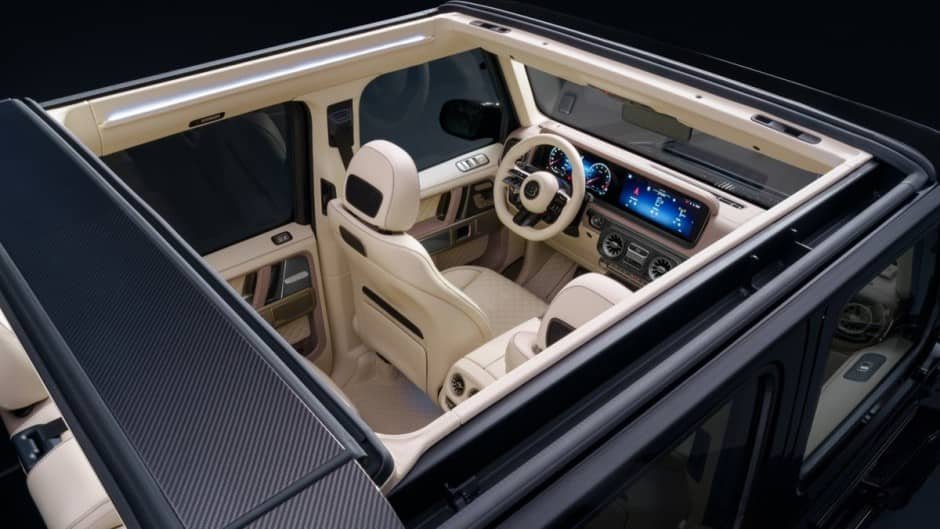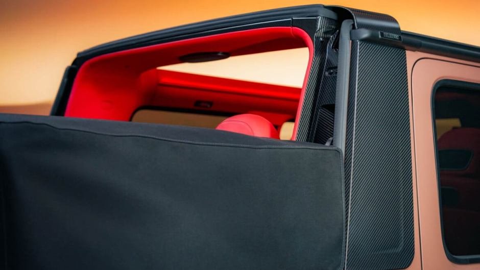Hər iki halda, adi Mercedes-AMG G63 ofrouderi 500-dən çox xüsusi sifarişlə hazırlanmış komponentdən ibarət olan mürəkkəb qatlanan dam örtüyünü alıb. Onun açılıb-bağlanmasına 20 saniyəyə gərəkdir. Bundan əlavə, ön şüşənin gücləndirilmiş çərçivəsi, karbon lifindən müdafiə qövsü, arxa şüşənin qızdırılması və aşağı salınmış damı qorumaq üçün yumşaq örtük nəzərdə tutulub. Əlbəttə ki, xüsusi arxa qapı və firma Widestar kuzov dəsti olmadan da ötüşməyib. İnteryerdə yeni dəri üzlük, trasnmissiyanın sükanaltı dəstəkləri və karbon lifindən dekor, eləcə də şirkətin adı həkk edilmiş çoxsaylı nişanlar var.