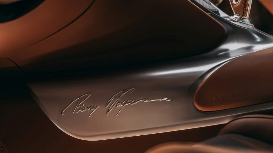 İnteryer ümumiyyətlə Veyron modelinin salon quruluşunu təkrarlayər, lakin tamamilə orijinaldır. Bəzi komponentlər müasir Chiron və Mistral modellərindən götürülüb, digərləri isə, xüsusi olaraq F.K.P. Hommage layihəsi üçün yaradılıb. Ensiz mərkəzi konsolda Audemars Piguet Royal Oak Tourbillon saatı ilə bəzədilmiş şaquli yumru tənzimləyicilər var. Cihazlar paneli fərdiləşdirilən displeyə malik olsa da, mərkəzdə böyük spidometr yerləşib. Üçqollu sükan çarxında metal düymələr və pillələrin dəyişdirilməsinə cavabdeh olan böyüdülmüş ləçəkləri var. Nəhayət, interyerdə dəri və əl ilə hazırlanmış parça ilə üzlənmiş yeni oturacaqlar və qapı panelləri var.