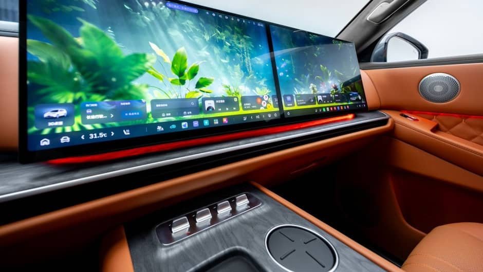 Altı nəfərlik salon 2+2+2 düzülüşündə konfiqurasiya edilib və onun tərtibatı yenə də bu seqmentdəki Çin modelləri üçün ənənəvidir. Ön paneldə cihazlar panelinin kiçik ekranı, media sisteminin ekranı və sağ sərnişin üçün nəzərdə tutulmuş monitor isə, vahid blokda birləşiblər.