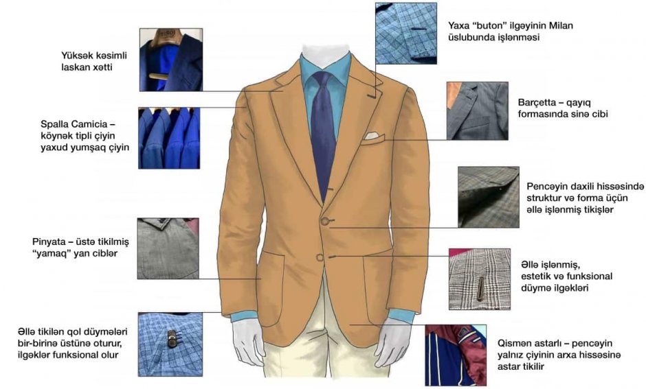 Anatomik eleqantlıq tərzinə xas olan Neapolitan kostyumunun detalları: