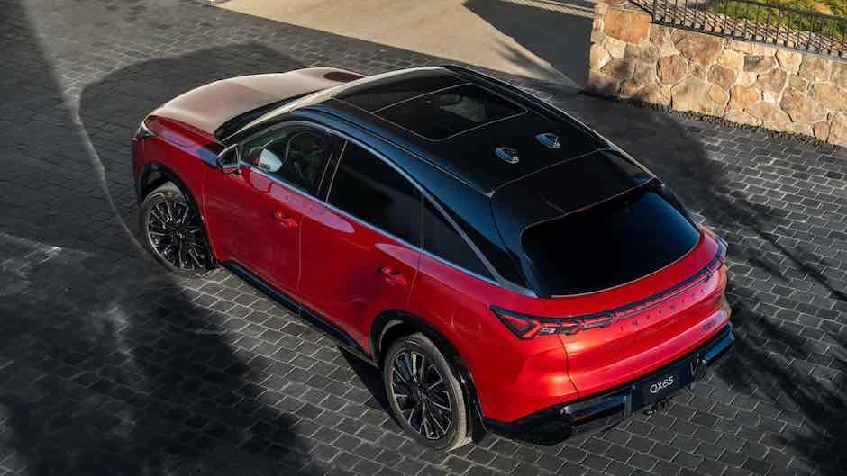 Infiniti QX65 modelinin texniki hissəsi üç cərgəli versiyadan götürülüb. Kapotun altında doqquz pilləli avtomatik transmissiya və tam ötürmə sistemi ilə birlikdə çalışan 2.0 VC-Turbo turbomühərriki (272 at qüvvəsi, 387 Nm) yerləşir ki, bu da yeganə seçimdir.