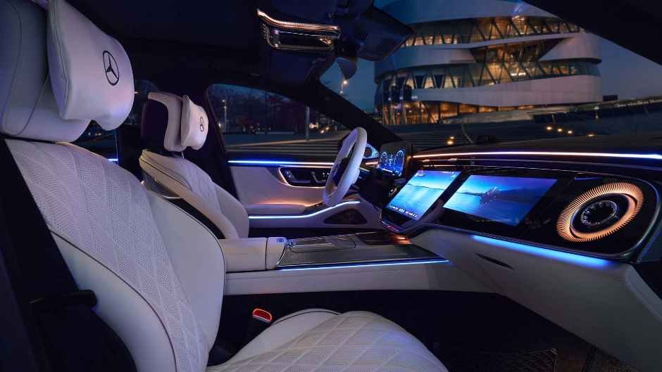 Bu yenilik sedanın standart təchizatına daxildir. Cihazlar panelinin 12,3 düymlük displeyi isə, öz yerini qoruyub. Tunel keçmiş yüksəlişində qadcetlərin simsiz şarj meydançası yerləşir, ön şüşənin altındakı mərkəzi havalandırma sisteminin deflektor dördlüyünün yerində isə, Zoom və ya Microsoft Teams vasitəsilə tam video konfrans təşkil etmək üçün daxili kamera quraşdırılıb.