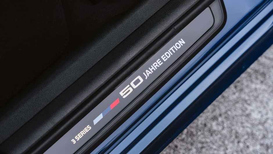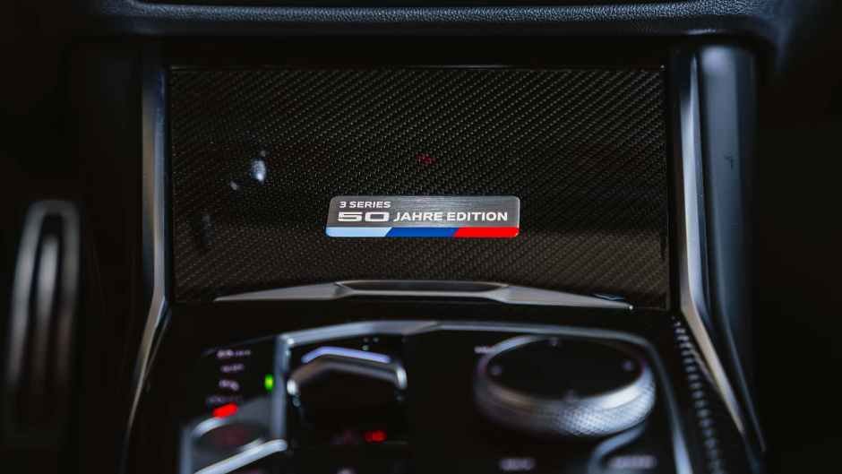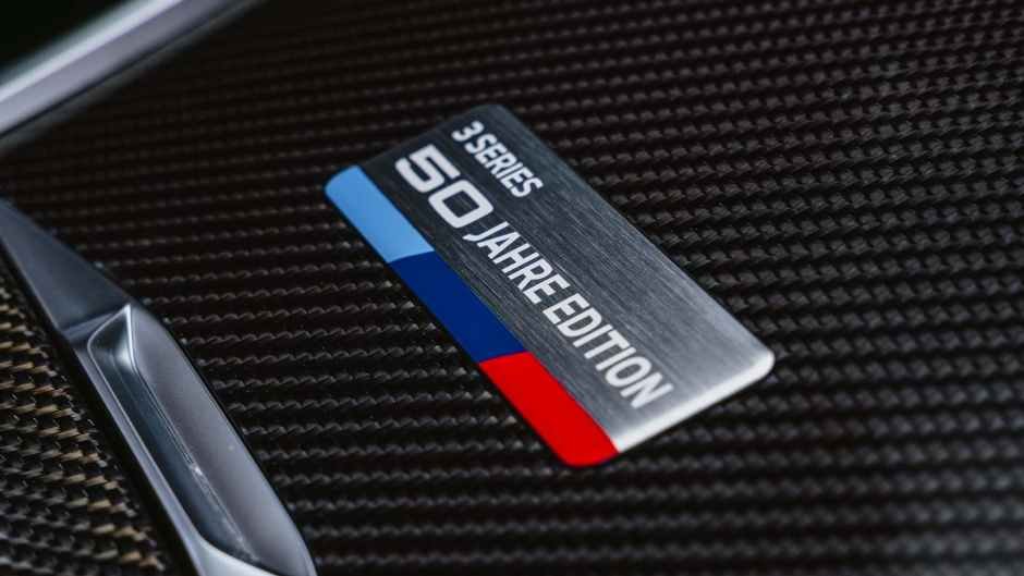 Yubiley nəşrinin interyerinin ən diqqət çəkən məqamı, ABŞ-da 3 Series üçün ilk olaraq təklif edilən, Merino dərisi ilə genişləndirilmiş tərtibatdır. Oturacaqlar ilə yanaşı, ön panel istisna olmaqla, qapı panelləri və dirsəkaltılar dəri ilə örtülür. Təchizata həmçinin karbonplastikdən dekor, Harman/Kardon audio sistemi, kandar lövhələri və mərkəzi konsolun qapağındakı metaldan xatirə lövhəciyi daxildir.