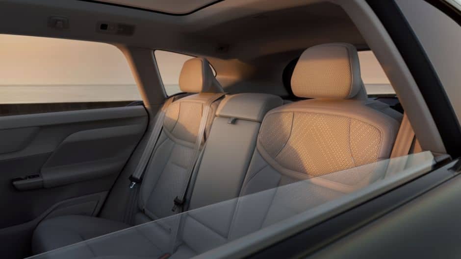 Volvo EX60 elektrik avtomobilinin salonunda ön şüşənin altında cihazlar panelinin kiçik 11,4 düymlük ekranı və firma HuginCore interfeysi tərəfindən idarə olunan məlumat-əyləncə sisteminin böyük 15,0 düymlük planşet var.